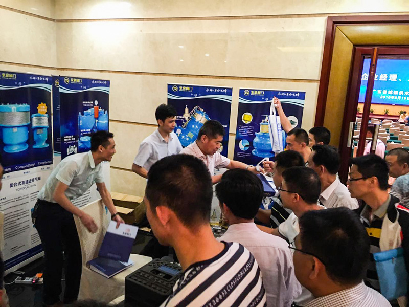 5月19日,《廣東省城鎮供水協會水企業經理、廠長學習會議》在廣東江門市隆重召開,廣東永泉閥門科技有限公司作為閥門界唯一代表,在會議中播放了產品視頻,陳鍵明總裁做了主旨演講。針對水廠日常生產現狀,永泉展臺陳列的結構先進、制造精良、功能齊全的樣品,滿足了水廠生產的實際需要,得到與會專家的熱烈好評,生產技術人員更是到我公司展臺尋求技術咨詢與合作,為永泉的品牌推廣、市場開發起到了積極的促進作用。