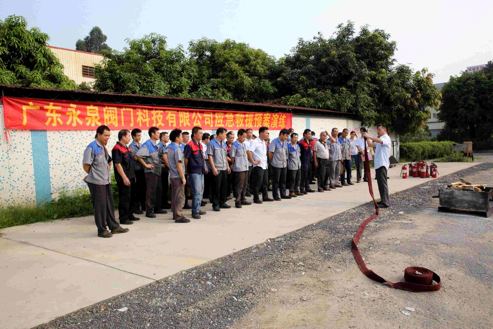 為檢驗公司全體人員是否明確自己的職責和應急行動程序,以及對于突發事件的應對處理能力和實戰能力,我公司(廣東永泉閥門科技有限公司)于2016年8月26日星期五上午8:00至9:30,在公司東邊圍墻外的停車場開展了應急預案救援演練活動。現場觀摩與參與人員多達上百余人。