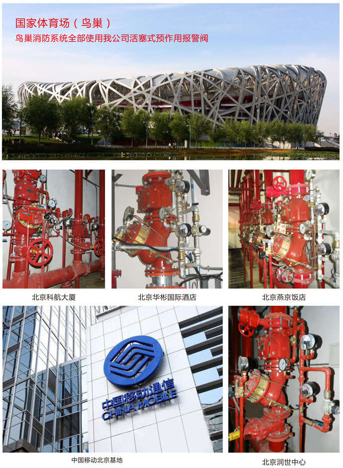 應用:預作用報警閥組是將火災自動探測報警技術和自動噴水滅火系統結合起來,在系統中安裝閉式噴頭。在未發生火災時該系統管道內通常充有低壓空氣以供檢測,故系統具有干式系統的特點。因此它適用于安裝在既需用水滅火但又絕對不允許發生誤噴的地方。例如:圖書館、檔案室、貴重物品儲藏室、電腦機房、貴重物品庫等處(國外一些裝飾豪華的賓館也常采用此系統)。還可替代干式系統安裝在高溫嚴寒冰凍等地區。
