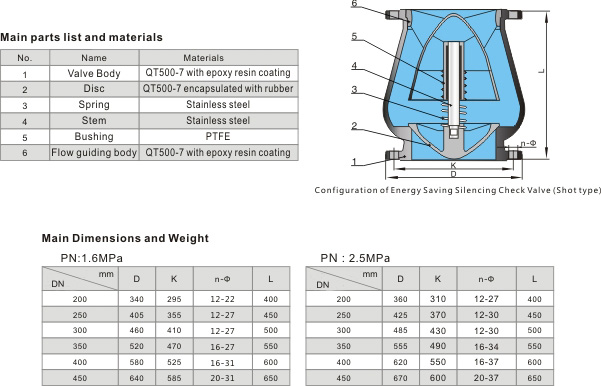 The Energy Saving Silencing Check Valve (Shot type) with flanged ends is a new generation of product developed by our company