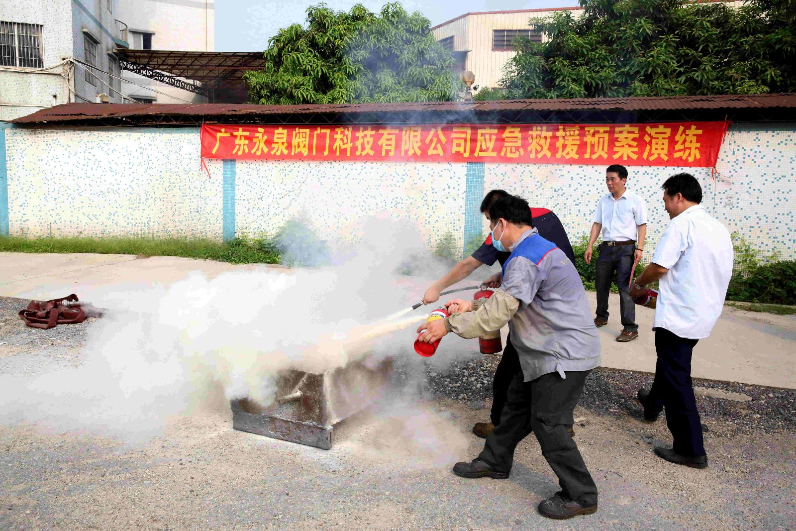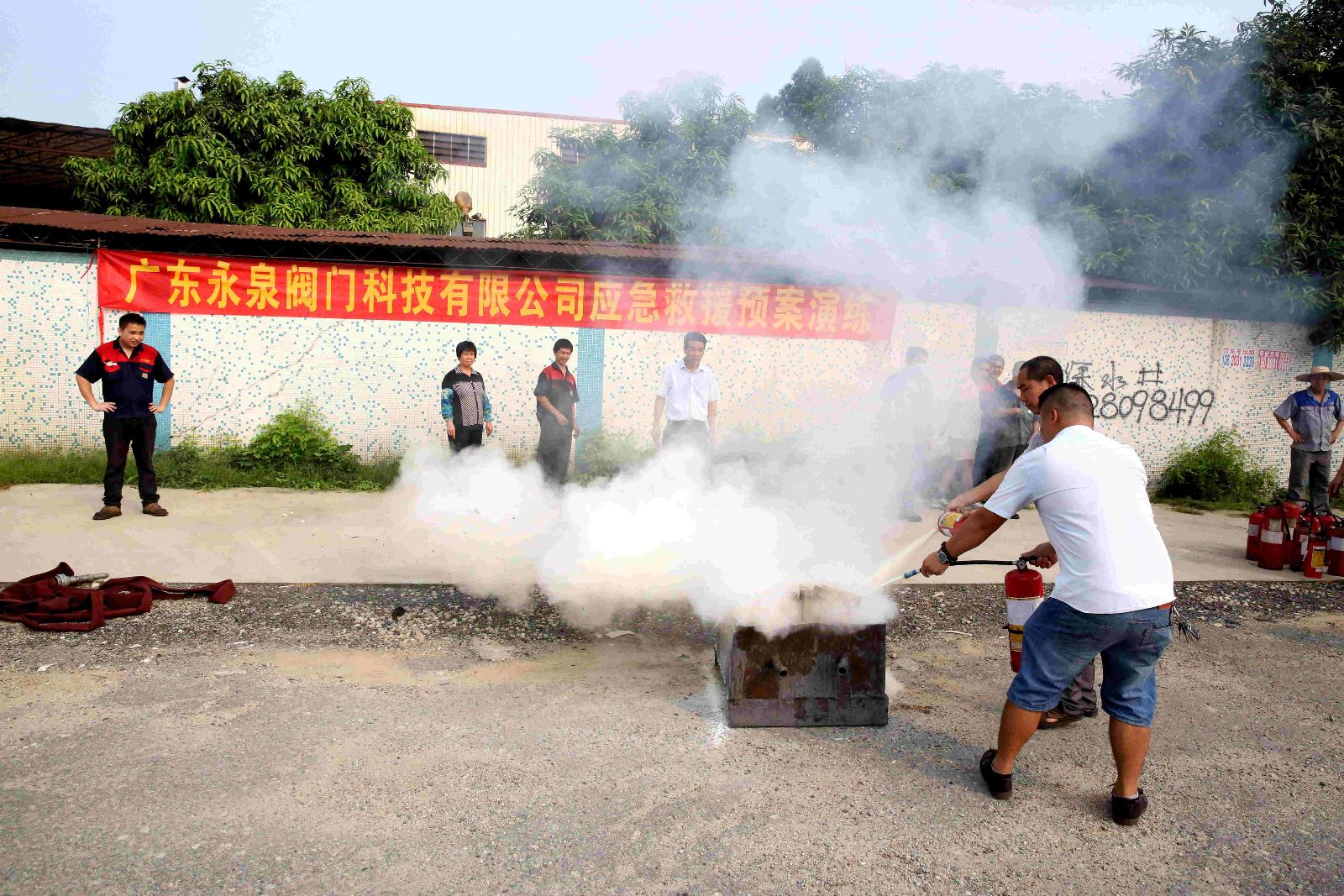 為檢驗公司全體人員是否明確自己的職責和應急行動程序,以及對于突發事件的應對處理能力和實戰能力,我公司(廣東永泉閥門科技有限公司)于2016年8月26日星期五上午8:00至9:30,在公司東邊圍墻外的停車場開展了應急預案救援演練活動。現場觀摩與參與人員多達上百余人。