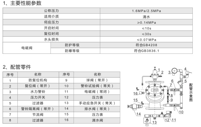 D.獨特的防復位機構設計,確保主閥打開后保持在開啟位置,可保證滅火過程中不會因斷電或誤操作而使雨淋閥重新關閉。