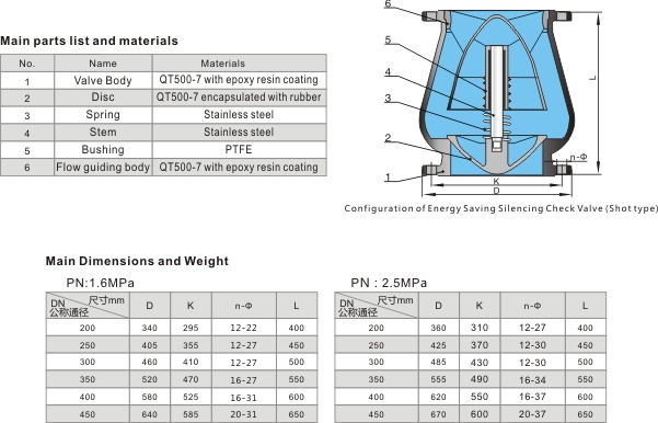 The Energy Saving Silencing Check Valve (Shot type) with flanged ends is a new generation of product developed by our company