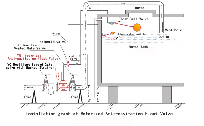 The Anti-cavitation safety pressure relief valve is made up of one piston main valve and a diaphragm pilot valve. By adjusting the compression length of spring in the pilot valve, which can determine accurately the setup of main valve relief pressure, the control pressure of main valve would not surpass its set point so that the piping system could keep in safe operation.