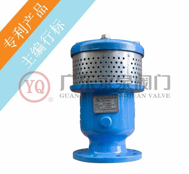 YQFGP Compound Quick Air Inbreathe-release Valve (Hereinafter referred to as air release valve) is a special air inflow and exhaust control device applied in water supply and drainage pipeline. When filling an empty pipe with water, air will then be quickly exhausted out of the pipe automatically. During operation in a pressurized pipeline, the small air vent orifice is sensitive, and air in pressurized air bag can be duly exhausted out of the pipeline so as to keep the flow smooth and improve efficiency of water supply; When the inside of pipeline has negative pressure differential, air will then quickly inflow to disturb vacuum so as to prevent pipeline from unstable failure due to large negative pressure differential, or reduce waste water suction from the pipeline leakage point causing the pipeline contamination. When emptying water from the pipeline, air will fill in great amount automatically and water will be speeding up discharging, and therefore shortening the time of water cut-off. When in proper operation, it can eliminate the water break damage to pipeline due to water hammer caused by pump shut-off, so as to keep the pipeline net in stable and safe operation. Owing to its quick action of air exhaust, sensitive small air vent orifice, and stable performance capacity, as well as high safety coefficient, etc., it is essential for long distance water supply pipeline with large DN.