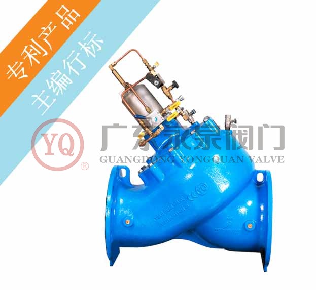 The Energy-saving Piston Controlled Pump Valve with Balancing Function (YQJHP46X-10Q, 16Q) is a type of hydraulic control valve with functions that controls pump opening and closing and infinite control of flow rate, etc. The valve could make different pumps including centrifugal pump, mixed flow pump and axial flow pump on their minimum shaft start power become possible, keep from occuring water hammer when shutting off pumps, and protect operating pumps from reverse spinning.